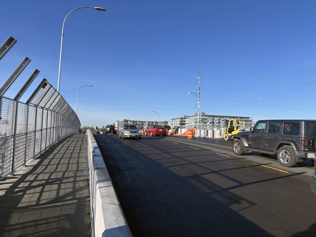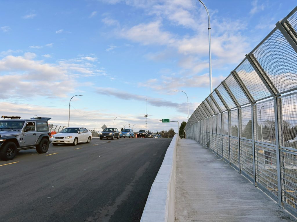 - Sidewalks and separated bike lanes on both sides of the overpass to provide a safe path for pedestrians and cyclists travelling across Highway 99.