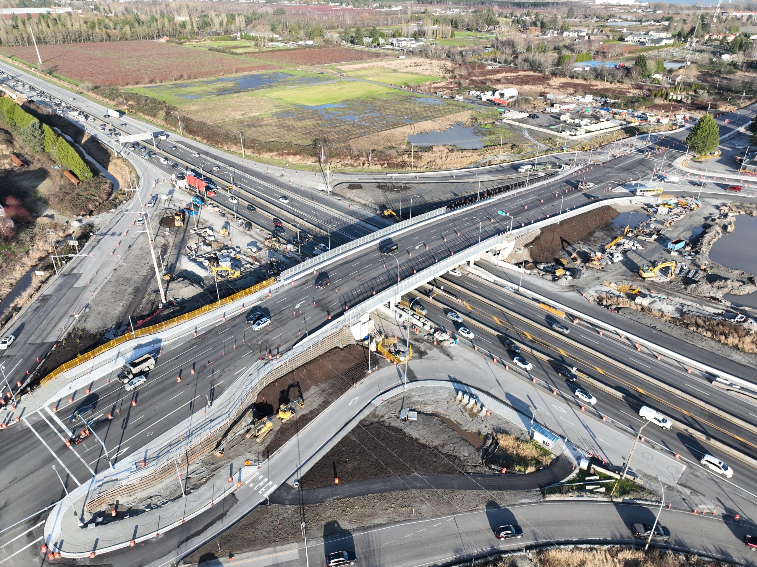 - Replacement of the existing two-lane interchange at Steveston Highway and Highway 99 with a five-lane structure. The new structure includes two eastbound lanes and three westbound lanes, including a left-turn lane onto Highway 99 southbound, to improve traffic flow.